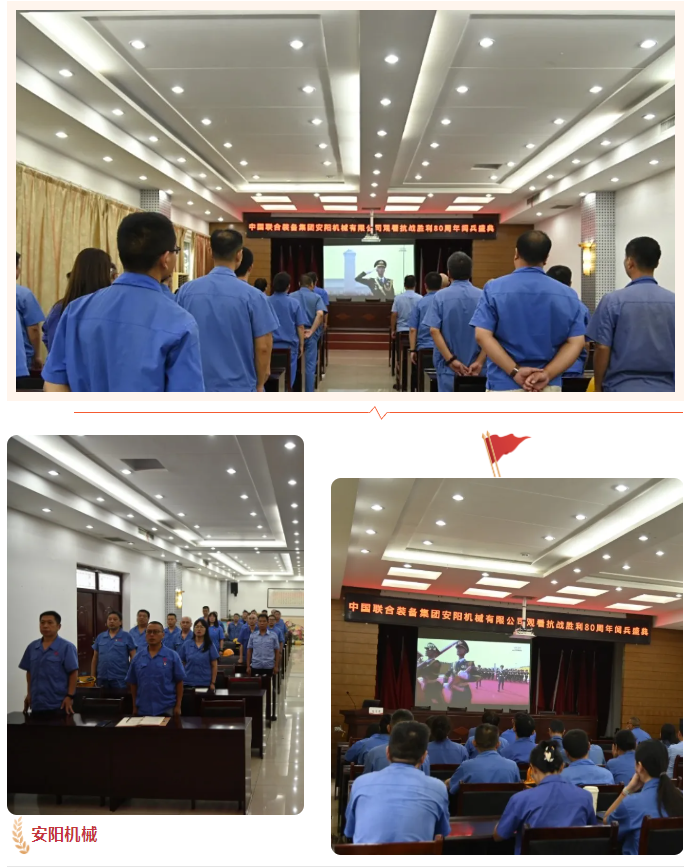 為深入學(xué)習(xí)貫徹習(xí)近平新時代中國特色社會主義思想,扎實(shí)開展愛國主義和革命傳統(tǒng)教育,9月3日上午,安陽機(jī)械黨委組織班子成員、各支部書記及50余名在職黨員,集中觀看“紀(jì)念中國人民抗日戰(zhàn)爭暨世界反法西斯戰(zhàn)爭勝利80周年閱兵式”直播,共同見證祖國強(qiáng)軍風(fēng)采,汲取奮進(jìn)力量。